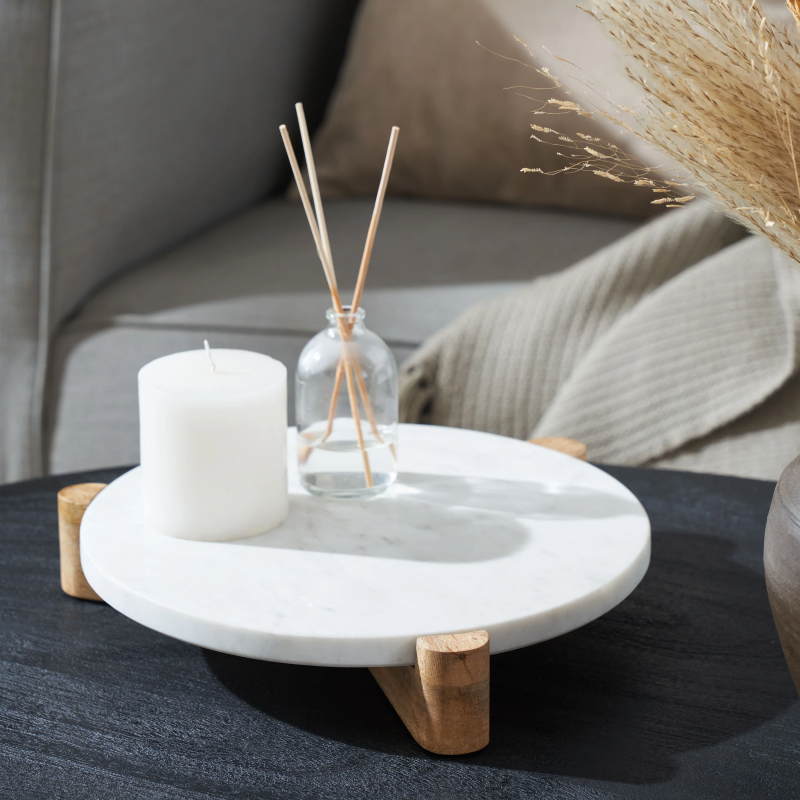Known for its lustrous look and high-quality feel, Banswara marble is the star of the show in this simple yet striking tray. Accented with mango wood, it will bring a dash of modern style to any interior. The perfect piece for staging an eye-catching vignette, place it on a buffet, bookshelf, coffee table or ottoman and let your styling skills take over. Product Details: