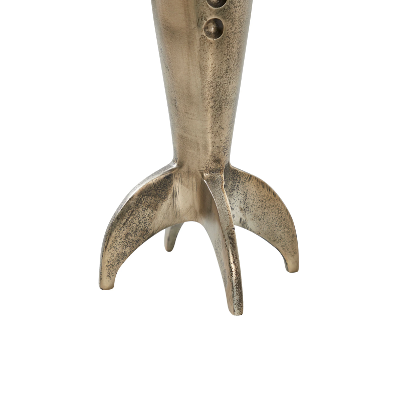 The Brooks rocket statue is ready to launch you into a universe of endless style. If you have a space that leans modern or is just in need of a shot of whimsy, this would be a smart and stylish choice. Featuring a handsome antique brass plated finish, this standout accessory is guaranteed to be a conversation starter. Product Details: