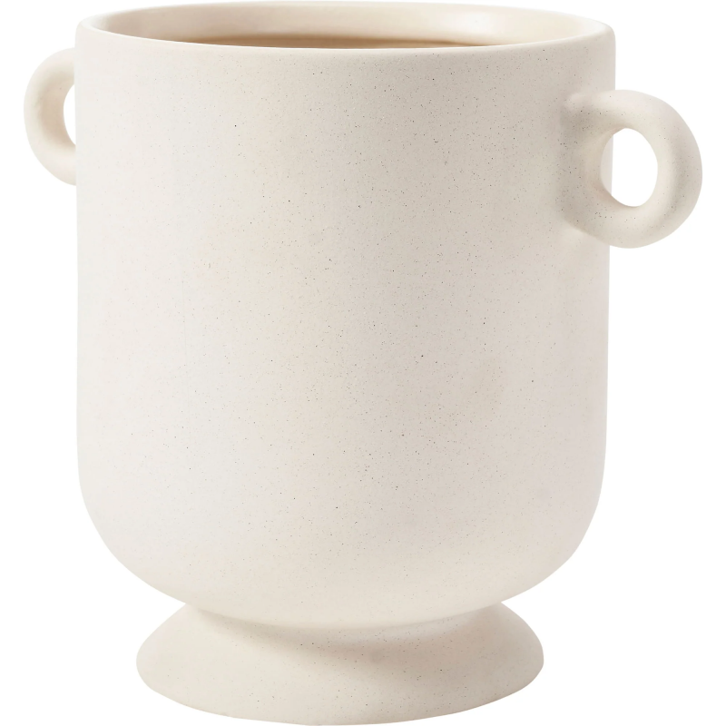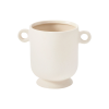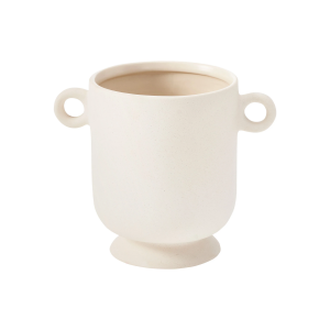 Matte cream ceramic stoneware emits an air of old-world architecture in this vase design. With a simple structure and smooth angles, it is pleasing to the eye at every passing moment. At 8.6 by 5.5 inches, it holds a small stature that is optimal for arrangement on a bookshelf or mantel.