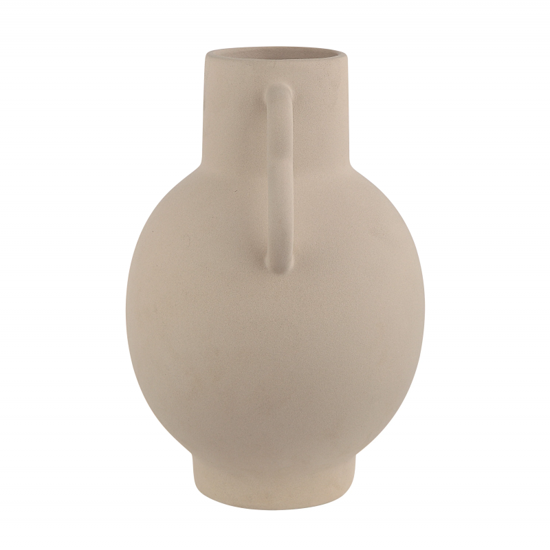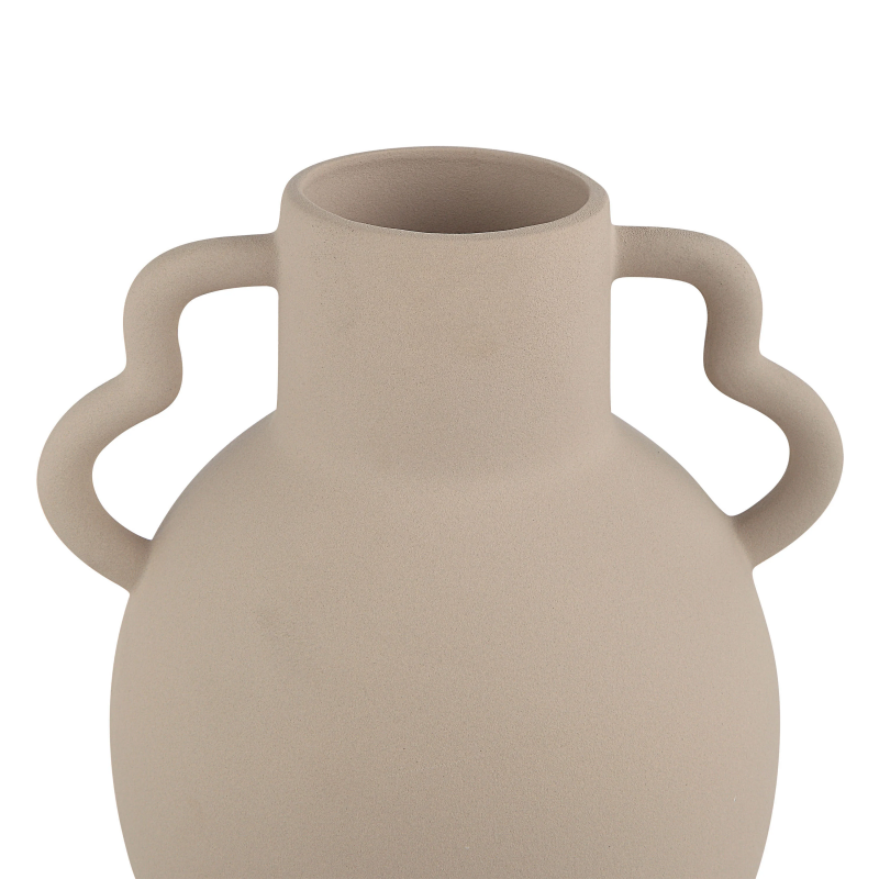 The Monet Ceramic Decorative Vase is a stunning piece of artistry, and not just a vase, but an expression of elegance, grace, and beauty. Made of quality ceramic, this vase stands tall as a symbol of lasting reliability and durability.Retro-inspired structure of this vase is accentuated by a fascinating handle design, which is sure to catch the attention of anyone who admires art. Its resilient textured matte beige finish ensures that the vase retains its pristine appeal for years to come, while the glazed finish adds an additional layer of protection, making it a piece of furniture that will stand the test of time. More than just an accent piece - it's a conversation starter. Its superb design adds a touch of class and sophistication to any space effortlessly. Product Details: