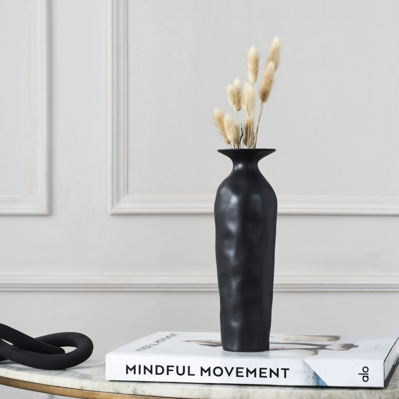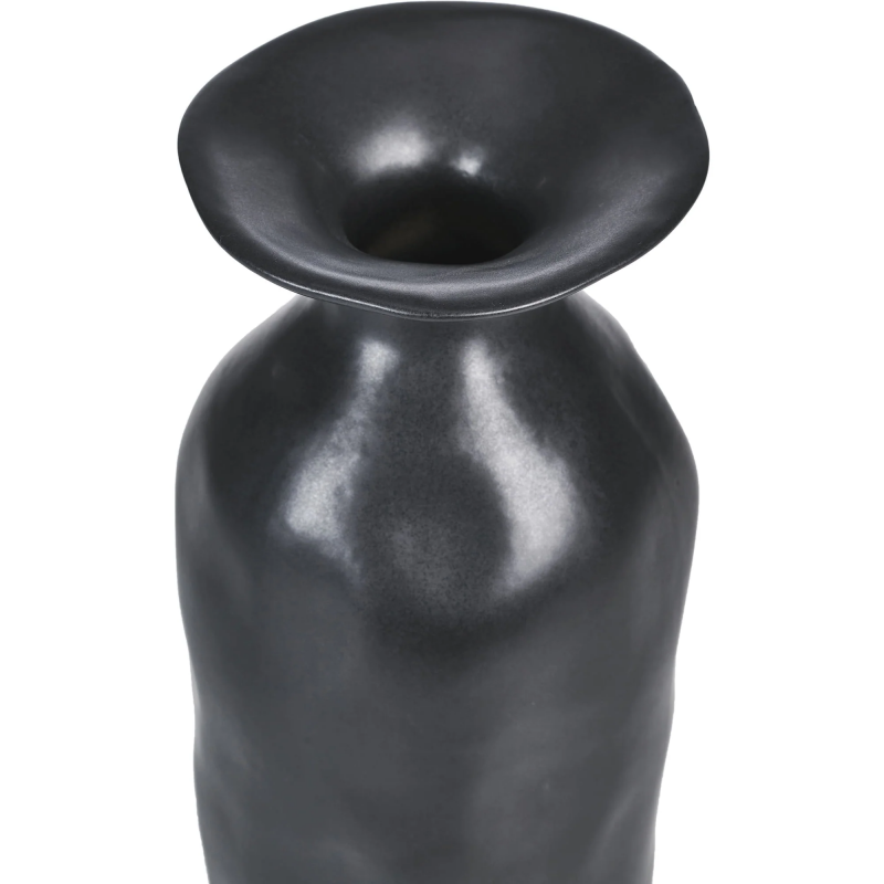 At once sleek and gothic, this vase’s textured structure allows highlights and shadows in its midst to enhance its impact. Made from ceramic stoneware, it holds quality in its design, which is felt in touch and vision. Showcasing a black finish, it is at its best when arranged amid vibrant hues that allow it to pop. Product Details: