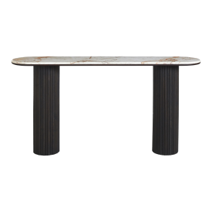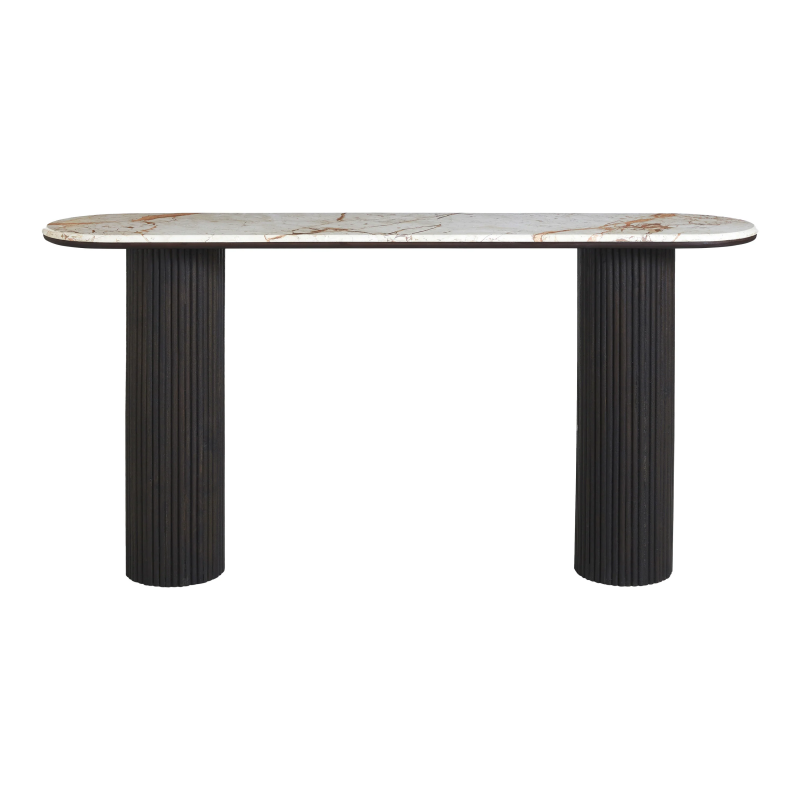 Infuse any space with effortless style and warmth with the Alessio console table. Its walnut-stained mango wood base, natural Breccia marble top, and rounded corners create a refined, modern-transitional look. Perfect for entryways, living rooms, or hallways, it brings elevated charm and functional elegance to any interior.