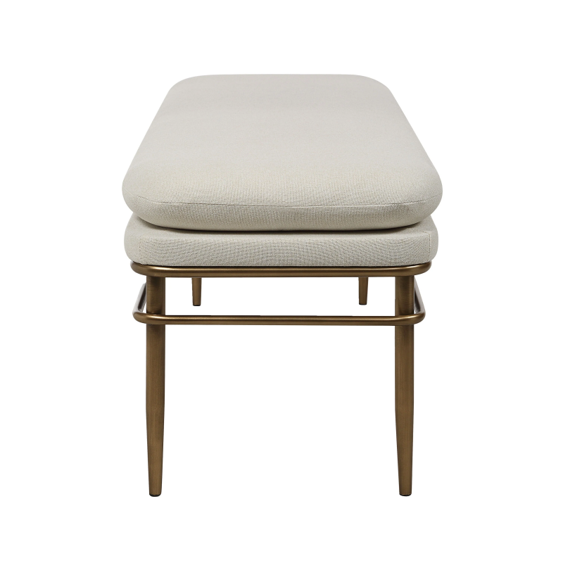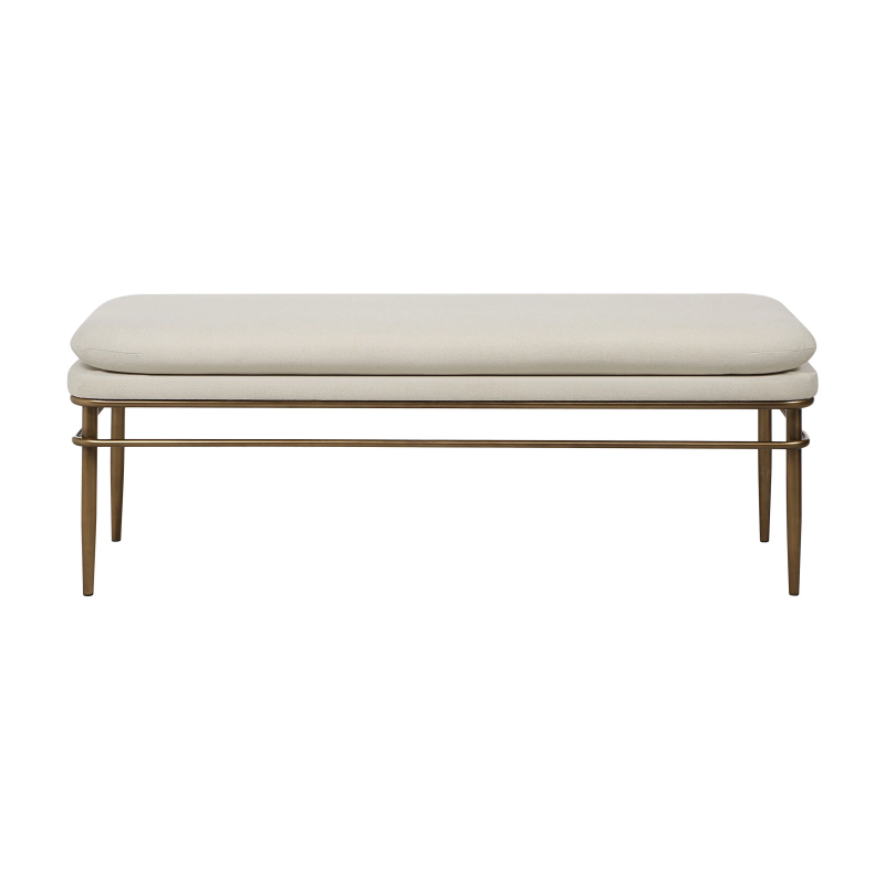Checking all the boxes of impeccable style, this bench has got it all. From its linen-blend upholstery to its dark antique brushed base, sitting down in comfort has never looked this good. A great choice for entryways, dining rooms or dressing areas, this bench is a must-add to any of your design projects. Product Details: