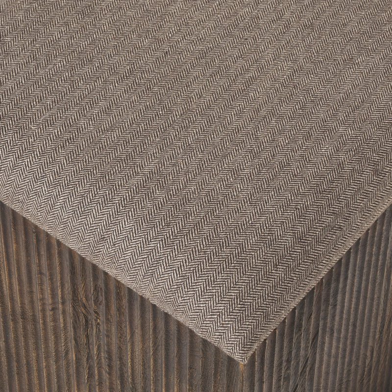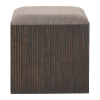 Inject transitional charm into any home or office with this stylish and practical ottoman. Used as a footstool, as extra seating or topped with a tray as a small table, its on-trend fluting, timeless walnut stain and beautiful linen blend fabric make it the perfect piece for adding comfort and purpose to your decorating scheme. Product Details: