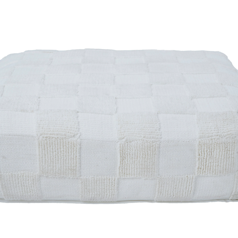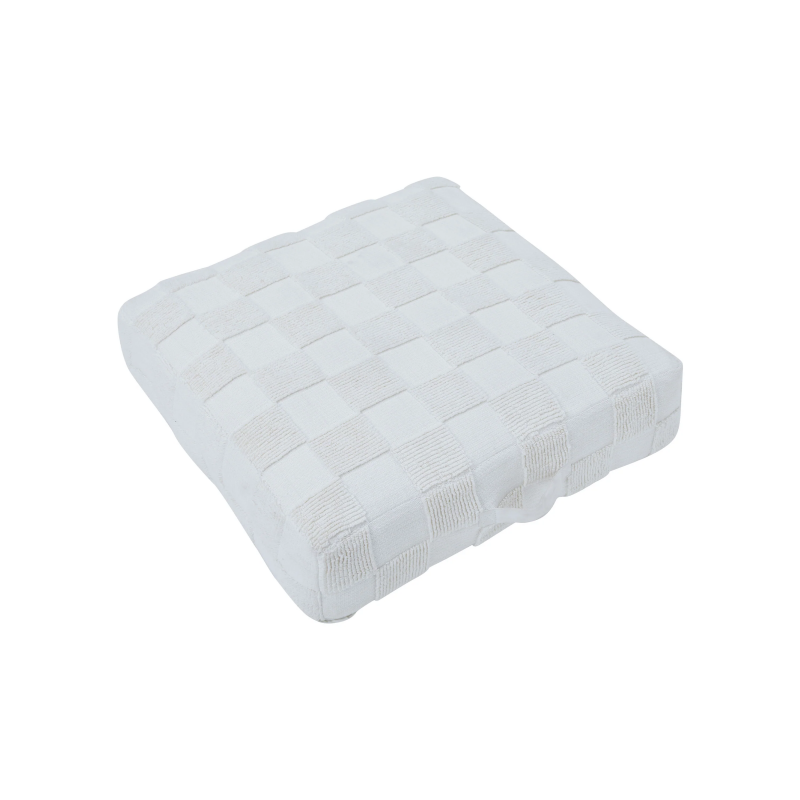 Elevate your lounge area with the Persona 30" Wide Floor Pouf in sleek ivory. Expertly crafted from high-quality 100% cotton, this pouf boasts exceptional durability and a robust weight capacity of 154.3 to 176.37 lbs. The knitted checkered detailing adds a unique touch to the design, making it a standout piece in any room. Versatile enough to complement any decor style, this floor pouf is the perfect addition to your living space. Don't compromise on quality and style - choose the Persona 30" Wide Floor Pouf for a comfortable and stylish seating option. Product Details: