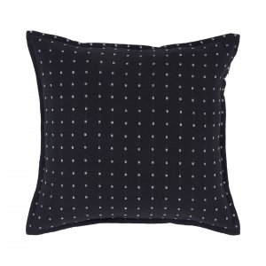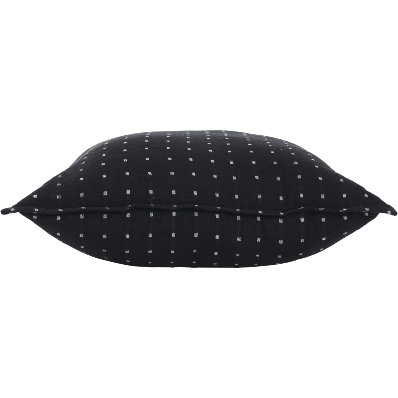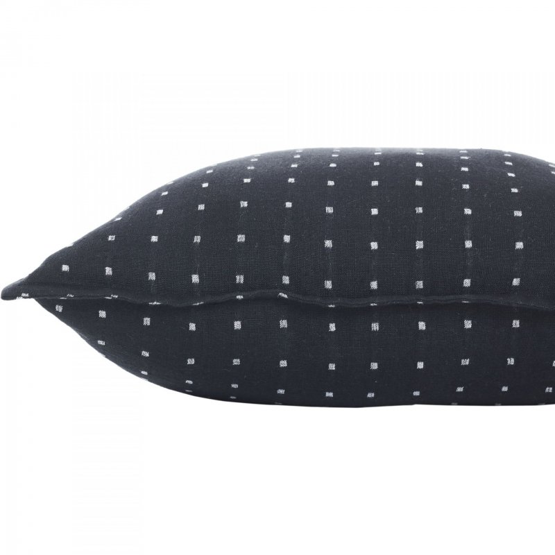 Going above and beyond the basic black accessory, this throw-pillow design carries character through a sleek format into the creative interior. With a black linen structure and white dot details, it can act as the embellished element or the neutral grounding piece depending on its design setting. With a square 20 by 20-inch structure and feather-down filling, it elevates the experience of rest within the bedroom or living space. Product Details: