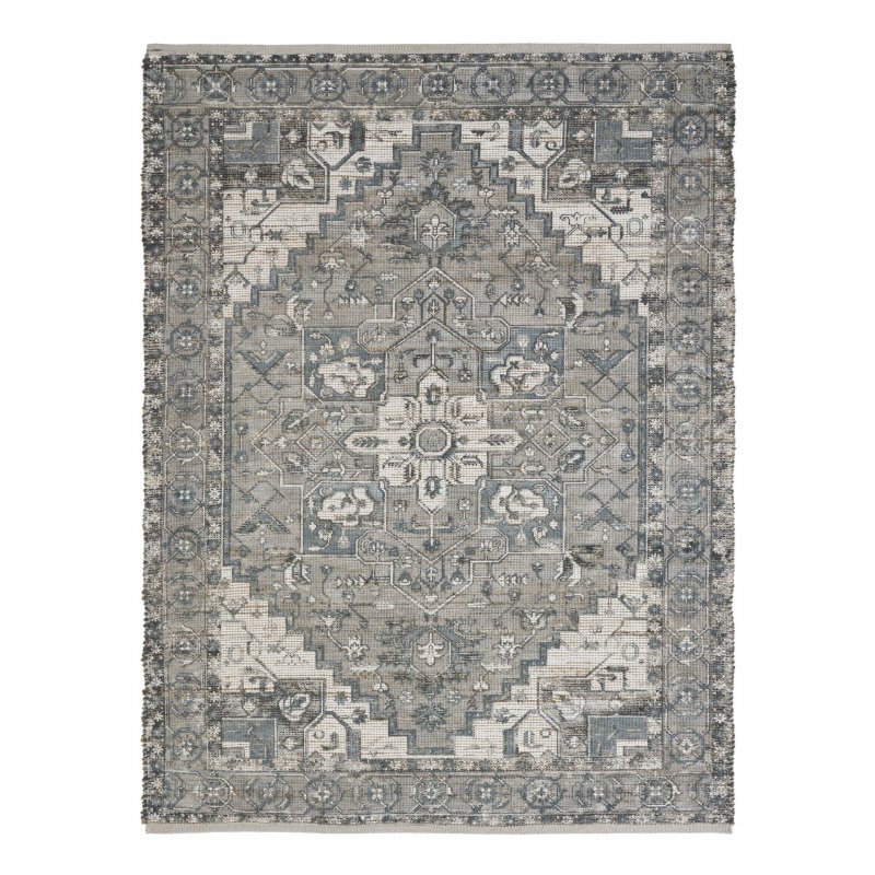 The casual contemporary interior is enveloped by a feeling of ancestry and character through this hand-woven rug design. A blend of cotton and jute, this rug feels comforting and lends a carefree texture to its surroundings. Clients looking for a way to add subtle color and prints to their living room, bedroom, or hallway will find this piece elevates existing elements to new heights.