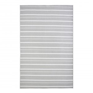 An effortlessly stylish energy fills the patio space through this outdoor rug. Featuring a cool grey palette with white stripe details, it proves that neutral tones can have a captivating impact. Available in a wide range of sizes, it is optimal for dining sets and completes al fresco living areas alike.