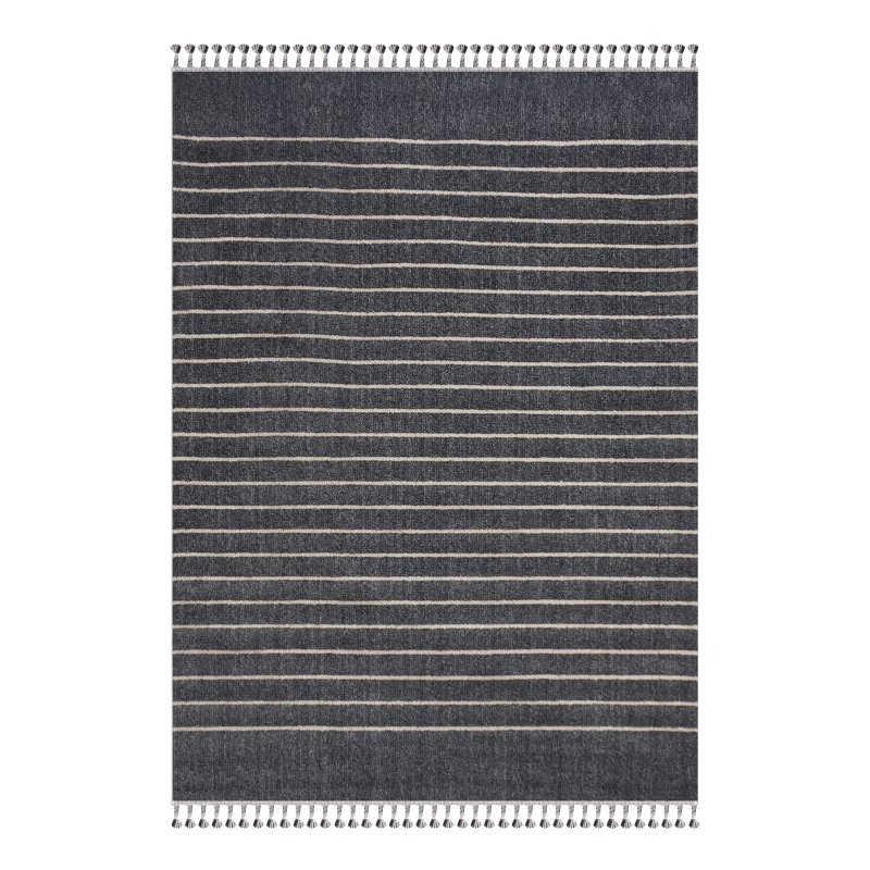 Nautical flair takes on a muted appeal within this rug design. The selection of sizes means this design can be at home in the grand beach house or cozy condo. The soft grey base acts as the optimal backdrop for dark captivating stripes to make their grand impression.