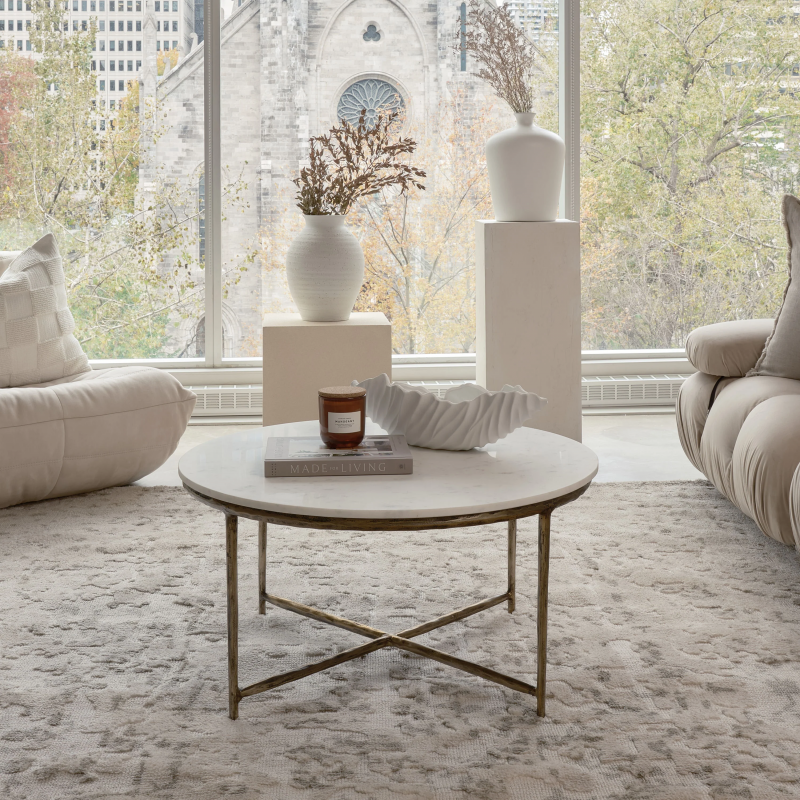 The Pearse Coffee Table in Antique Brass is a strong and stylish centerpiece for your home. Made from durable cast aluminum, this table is built to last through everyday use. With a solid weight capacity between 33.0 to 44.09 lbs, it easily holds your items securely. Its plated antique brass finish not only looks great but also protects the table from daily wear and tear, ensuring it stays appealing for longer. Its versatile design effortlessly suits any decor style, adding a touch of sophistication to your living space. Product Details: