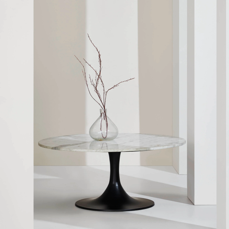 While often reserved for utility, this coffee table acts as a designer-quality focal point in the contemporary home. With an effortlessly chic marble and aluminum construction, this table can serve as a decorative element in the living room or as a resting place for trays and coffee table books. When this table is styled with other neutral hues, the interior overall takes on a classy and cool impression. Product Details: