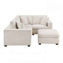 Create the ultimate focal point with this versatile 5-piece modular sectional, featuring a spacious L-shaped silhouette and a matching large ottoman. Wrapped in premium beige chenille upholstery, this set offers a soft, textured feel that complements modern and transitional decors. The high-density, Dacron-wrapped cushions and robust plywood frame ensure lasting comfort and durability for the whole family. Perfectly customizable, this corner sofa set adapts to your room's layout while providing a sophisticated, high-end look for any living space.