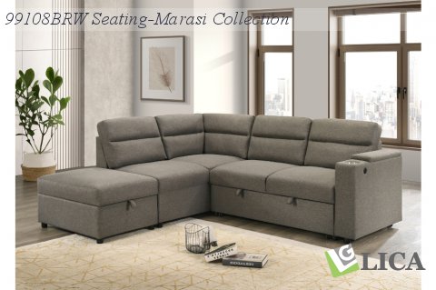 | 99108BRWSSL | 0 | 3-piece Sectional with Right Side Loveseat with Pullout Sleeper and Storage Arm & Left Side Chaise with Storage Ottoman | 265.32 | 88.25 x 81 x 34.5H |