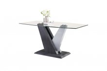 When it comes to metal and glass styling with bright chrome accenting, it doesn’t get better than the Baxter-Jasmine Dining Collection. A tempered glass table top sits on a unique grey and white geometric pedestal that perfectly blends with its chrome metal supports. Paired with the Jasmine's contemporary floating chair design with continuous chrome-finished wraparound base and grey faux leather upholstery, this combo allows you to assemble the dining room centrepiece of your dreams.
