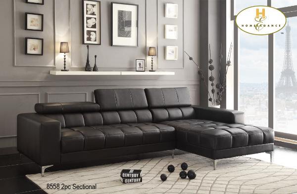 | Contemporary 2pc Sectional with motion headrests in Black Bonded Leather-match |