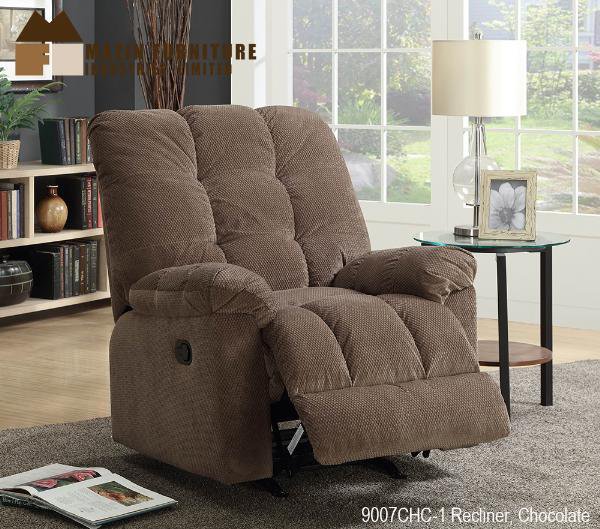 | The Rockland Glider Recliner. You'll have lots of room to Rock 'n' Roll in this wide and cushy glider recliner. It's warm, soft fabric, feels great. |