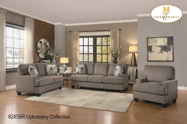 | The Kenner Collection. Unfettered design allows for your individual decorative aspirations to soar. The sofa is available in both a pull out sleeper or traditional setup. The sofa and loveseat are paired with contrast pillows. Two fabric options are available - Grey or Brown for versatile placement in a number of environments. |