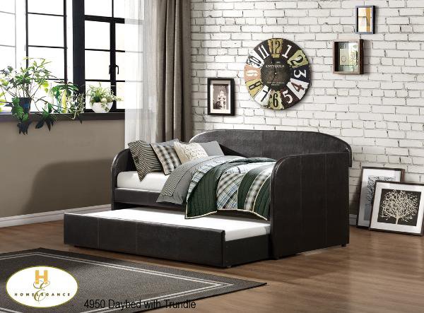 | The Roland Collection. With a modern design that includes clean lines and a dark brown bi-cast vinyl or modern gray fabric, the Roland Collection will be a functional addition to your home. Nestled below the twin bed is the easily accessed lower trundle unit. Casters make quick work of extending this extra sleep space. |