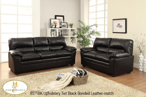 The Talon Collection. This stationary group features amply stuffed seating and a bonded leather-match covering.