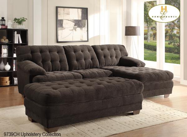 | The Brooks Collection. The unique feature of this collection is the wide chaise that extends from the sectional sofa. The coordinating ottoman tucks neatly into the face of the sofa, effectively extending your lounging space. Chocolate Textured Plush Microfibre |
