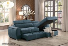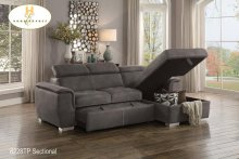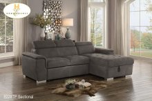 The Ferriday Collection. Under seat storage is revealed with the pull of a tab on the end chaise. The lower portion of the seating configuration pulls out to reveal a pop up trundle that creates a bed space creating a relaxing environment with minimal effort. The collection is offered in blur or taupe fabric, both with contrast stitching.