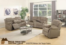 Motion Upholstery Collection offered in Chocolate, New Grey and Tan Patterned Fabric