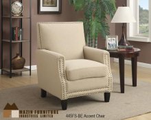 High-back comfort is key in this sophisticated accent chair. The soft and neutral beige woven fabric is appointed with spaced nail-head trim in double lines along the front, and outlining the frame along the back. Altogether a handsome choice.