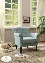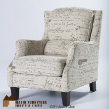 The artistic French script pattern on an oatmeal fabric is the perfect cover for this lovely and lively accent chair. It has the comfort of a wing chair with the grace of a fashion design. What's most important, is that it is super comfortable!