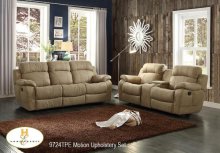 The Marille Collection. With either the extended stretch of the reclining sofa or soothing rock of the reclining chair, your comfort is taken care of in this collection. Drop-down cup holders add additional function. Taupe fabric