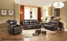 The Allenwood Collection. The reclining sofa and loveseat feature dual reclining ends, while the accompanying chair provides the added function of gliding mechanism. Amply stuffed for comfort, the collection is further enhanced by the dark brown top grain leather match covering.