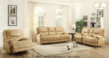 The Risco Collection. The sofa features dual reclining ends, as does the gliding loveseat with tis center console unit. The accompanying chair completes the arrangement with a gliding recliner mechanism. Breathable faux leather in honey taupe or burgundy completes the look of the collection.