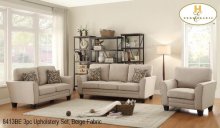 Feel warm and cozy, put your feet up, and snuggle into this motion collection. Featured in a two-tone cover, the beige fabric colour stands out against the easy to maintain dark brown leatherette. With reclining mechanisms on all three pieces, no one is left out! Both left and right sides recline on the loveseat and sofa.