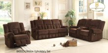 The Slater Collection. Covered with greyish brown fabric seating and dark brown bi-cast vinyl accent, the modern lines of this seating group are further enhanced by track arms. The chaise can be configured as right or left side placement based on the needs of your space.