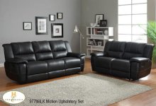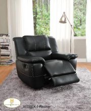 The Cantrell Collection. The black bonded Leather match seating group features contrast stitching and manual pull reclining mechanism.