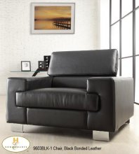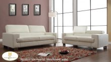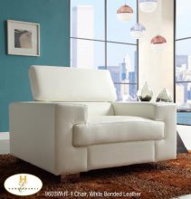 The Vernon Collection. Metal legs support the bonded leather seating group while also enhancing the look. The headrests atop each piece add function to this already unique group. Available in Black or White Bonded Leather