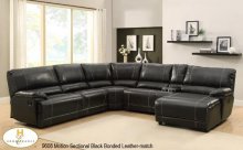 The Cale Collection. Covered in Black Bonded Leather-match that features contrast white stiching, there is a hint of masculinity that permeates the collection.