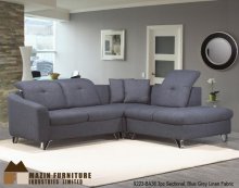 Clean modern lines blend seamlessly with the contemporary feel of your home with this sectional set. Chrome-finished metal legs support the blue-grey linen fabric-covered set and instantly elevate the look of your living space. Adjustable headrests add function to this already unique collection.
