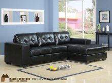Contemporary 2pc Sectional with right hand facing Chaise (shown in Black also available in QPZ16-Red Bonded leather and BA20-Charcoal Grey Linen Fabric)