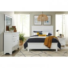 The transitional styling of the Blaire Farm Collection serves as the perfect complement to the rustic aesthetic that inspired the design. Horizontal accent at the top of the headboard lends visual contrast. The white finish that covers the queen bed lends to a versatile look sure to be a perfect fit in your home.