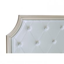Utterly feminine from the convex clipped corners of the headboard to the elegant framing of the drawer fronts, the Libretto Collection will be a glamorous addition to your bedroom suite. Crystal tufting adorns the light gray bi-cast vinyl headboard while high-polish hardware glistens against the collection’s silver finish. Additional storage space comes in the form of drawers found on the bed’s footboard.