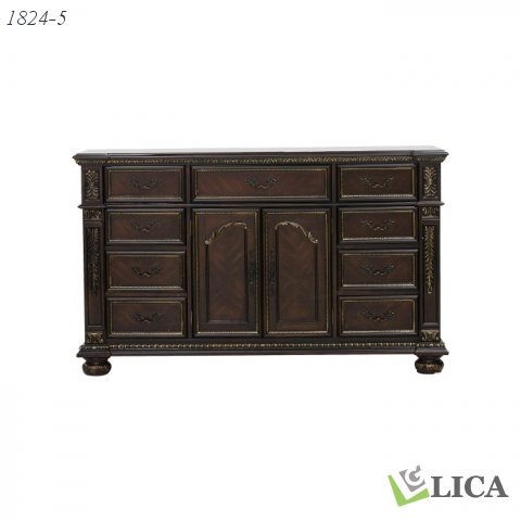 Old-World European styling is captured in the dramatically elegant Catalonia Collection. Traditional design elements reign at every turn – egg and dart molding, acanthus leaf carving, bead molding, gold tipping and extravagant carvings – creating a sophisticated look for your bedroom. Each drawer front features dark bronze fixed-drop hardware with decorative flourish that furthers the elegant appointments that embellish this collection. A traditional cherry finish is utilized to highlight the cherry veneer of the set and decorative inlay patterns found on the dresser top.