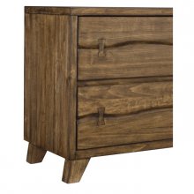 The natural aesthetic of poplar wood is celebrated in the design of the Kenmare Collection. The solid poplar of the nightstand features a teak finish that serves to capture the gorgeous grain of the wood, with wood cleat connections providing contrast to the finish. Grooved cutouts on the drawer’s undersides act as discrete drawer pulls that do not detract from the natural flow of the nightstand’s drawer fronts.
