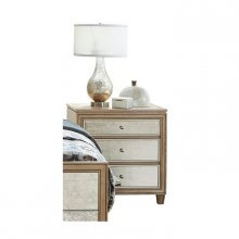Your personal style will be reflected with the addition of the Kalette Collection to your bedroom. Antiqued mirror panels cover the drawer fronts of night stand, highlighting the light oak finish over oak veneer of the collection. Knob hardware provides an unobtrusive break to the clean lines.
