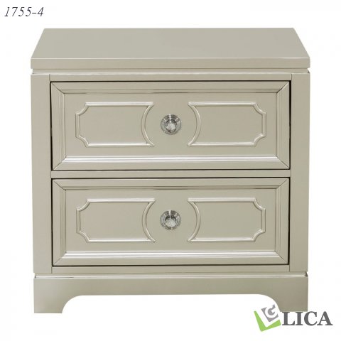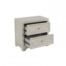 Utterly feminine elegant framing of the drawer fronts, the Libretto Collection will be a glamorous addition to your bedroom suite. High-polish hardware glistens against the nightstand’s silver finish.
