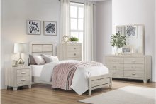 The modern styling of the Quinby Collection is achieved by blending the natural look of wood grain and the clean lines of contemporary design to create a unique bedroom group that will fit right in with your home’s aesthetic. The embossed faux-wood grain of the chest is perfectly complemented by the subtle contrast of the nickel-finished metal fixed drawer pulls and the clean, defining lines of the framing.