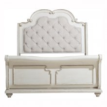 Inspired by the look of French Provincial styling, the Willowick Collection lends an air of classical romanticism to your opulent dining room. Subtle rub-though of the antique white finish reveals gray undertones, that when paired with brown cherry finished tabletop, serves to highlight the poplar solids, along with the ash veneer. Pairing with the table are the end and side chairs, each featuring button-tufted backs and neutral toned fabric. The china features behind glass door storage as well as behind wood door and drawer storage that provides ample space to store your tabletop accessories, while elegant framing, lightly distressed antiqued hardware and turned feet provide the decorative accouterment that ties the look together. Providing further function is the dual purpose buffet, as the china base or as a stand-alone unit.