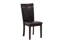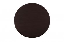 Wood rails top the brown faux leather covered chairs in the Shankmen Collection. Seating four comfortably, the round tabletop is supported by the gently curved legs of the display table base. The collection is offered in an espresso finish.