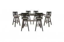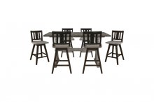 Creating a subtle rustic look is the design of the Amsonia Collection. A gray finish graces the solid rubberwood dining group highlighting the veneer. Providing visual interest beyond the classic styling, are the alternate finishes of the accompanying chairs, offered in black sand-though and white sand-through. The chairs also feature a swivel mechanism with three distinct seat backs – X-back, divided X-back and vertical slat back, lending to ease of motion while seated.