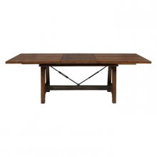 Heavily influenced by industrial design, the Holverson Collection will lend a unique look to your personal space. Gunmetal finished wood framing provides sturdy structure and profile to each piece in this collection. Faux rivets provide additional detail to the metal bracketing that is prominently on display. Rectangular dining height table allows for perfect placement within your casual dining space. Side chair for both table heights present the opportunity to customize seating to fit your lifestyle. A rustic brown milk crate finish is utilized to highlight the acacia veneer. The open display hutch paired with the drop front server base, provides ample display and behind door storage for your tabletop accessories.
