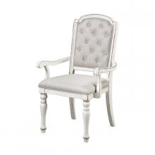 Inspired by the look of French Provincial styling, the Willowick Collection lends an air of classical romanticism to your opulent dining room. Pairing with the table are the arm chairs, each featuring button-tufted backs and neutral toned fabric.
